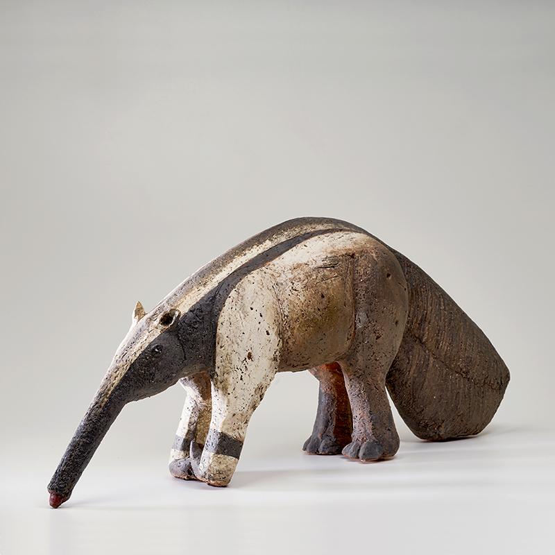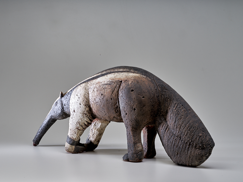 Er ist somit ein Meister der Gegensätze: irgendwie ungelenk, aber perfekt an sein Leben angepasst. Diese ungewöhnliche Eleganz wird in den keramischen Skulpturen aufgegriffen: schlanke Formen, gewitzte Details und ein Hauch von skulpturaler Abstraktion.
