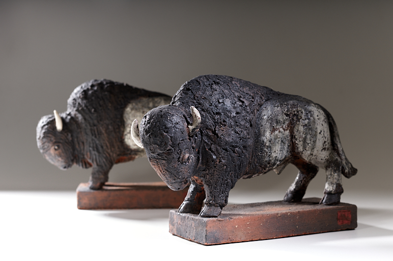 Bisons, die mächtigen Bewohner der nordamerikanischen Prärien, verkörpern unerschütterliche Stärke und eine tiefe Verbundenheit zur Natur. Meine keramischen Bisons greifen diese beeindruckende Präsenz auf. Aus Ton geformt, mit kraftvollen Körpern und markanten Silhouetten, strahlen sie Ruhe und Beständigkeit aus.