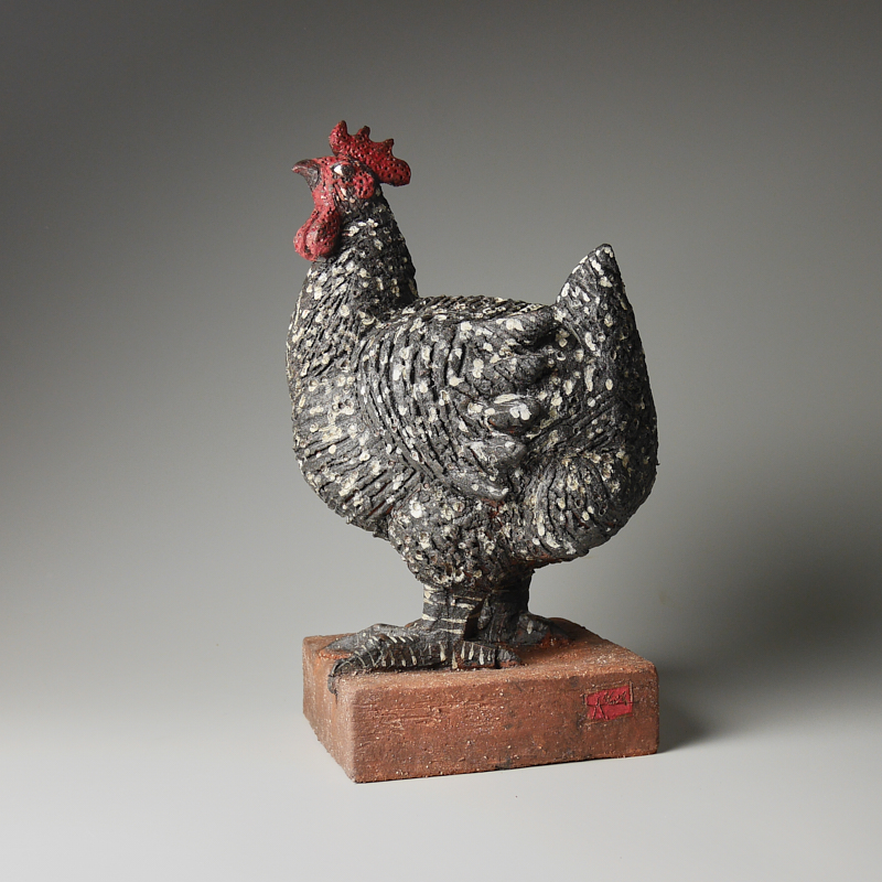 Die aus rotem Steinzeugton gefertigten Figuren zeigen typische Posen, die jedem Hühnerliebhaber bekannt sind: von der scharrenden Henne bis zum Hahn, der alles im Blick hat. Ihre schlichte, fast schelmische Gestaltung macht sie zu keinem dekorativen Element – sie erzählen von der Lebendigkeit und dem kleinen Alltagschaos, das Hühner so liebenswert macht.